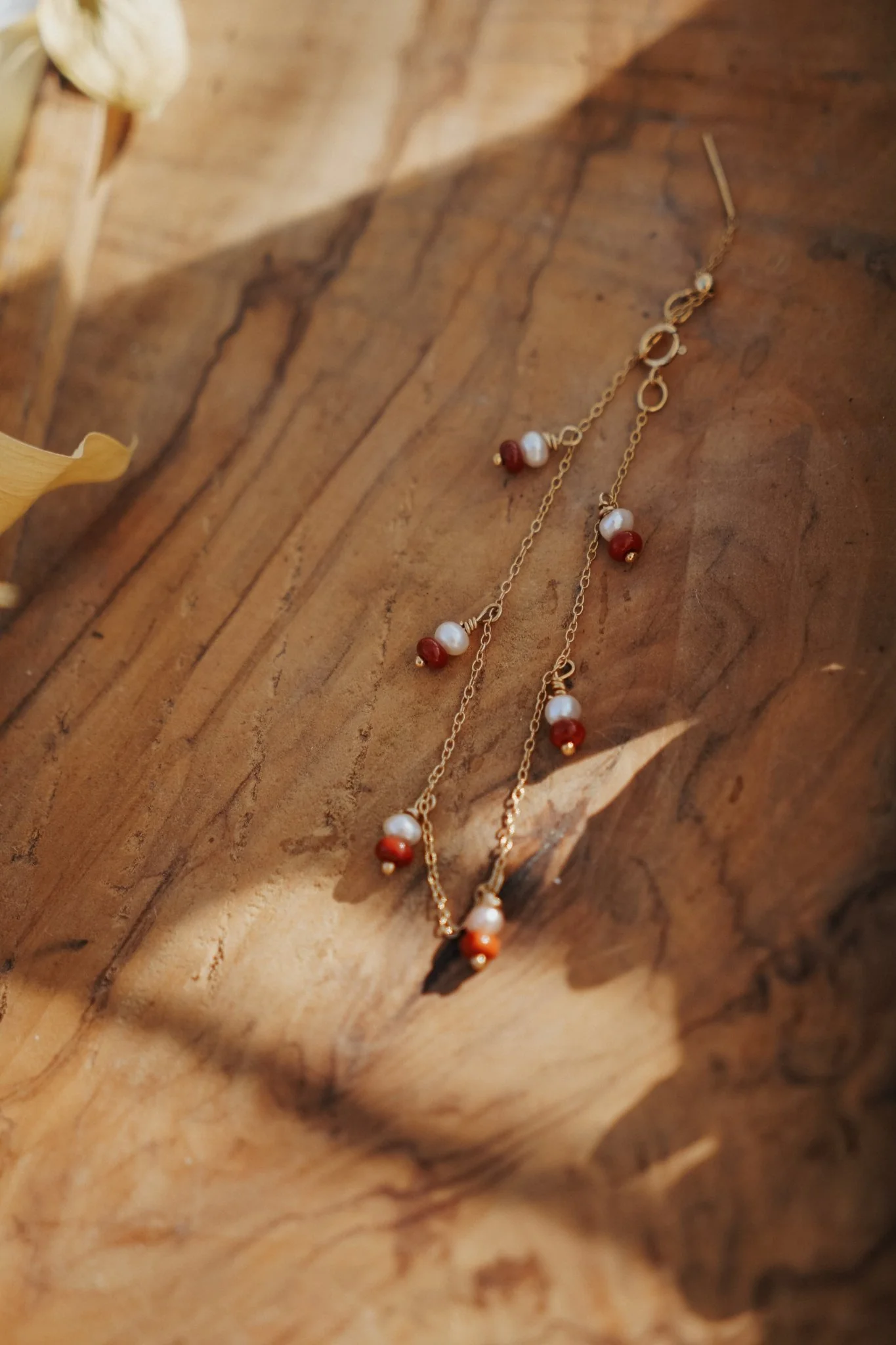 This new dainty gold-filled bracelet design with Red Jasper and Pearl beads has us drooling. It's got all the light, elegant vibes. The perfect blend of trendy and unique.
