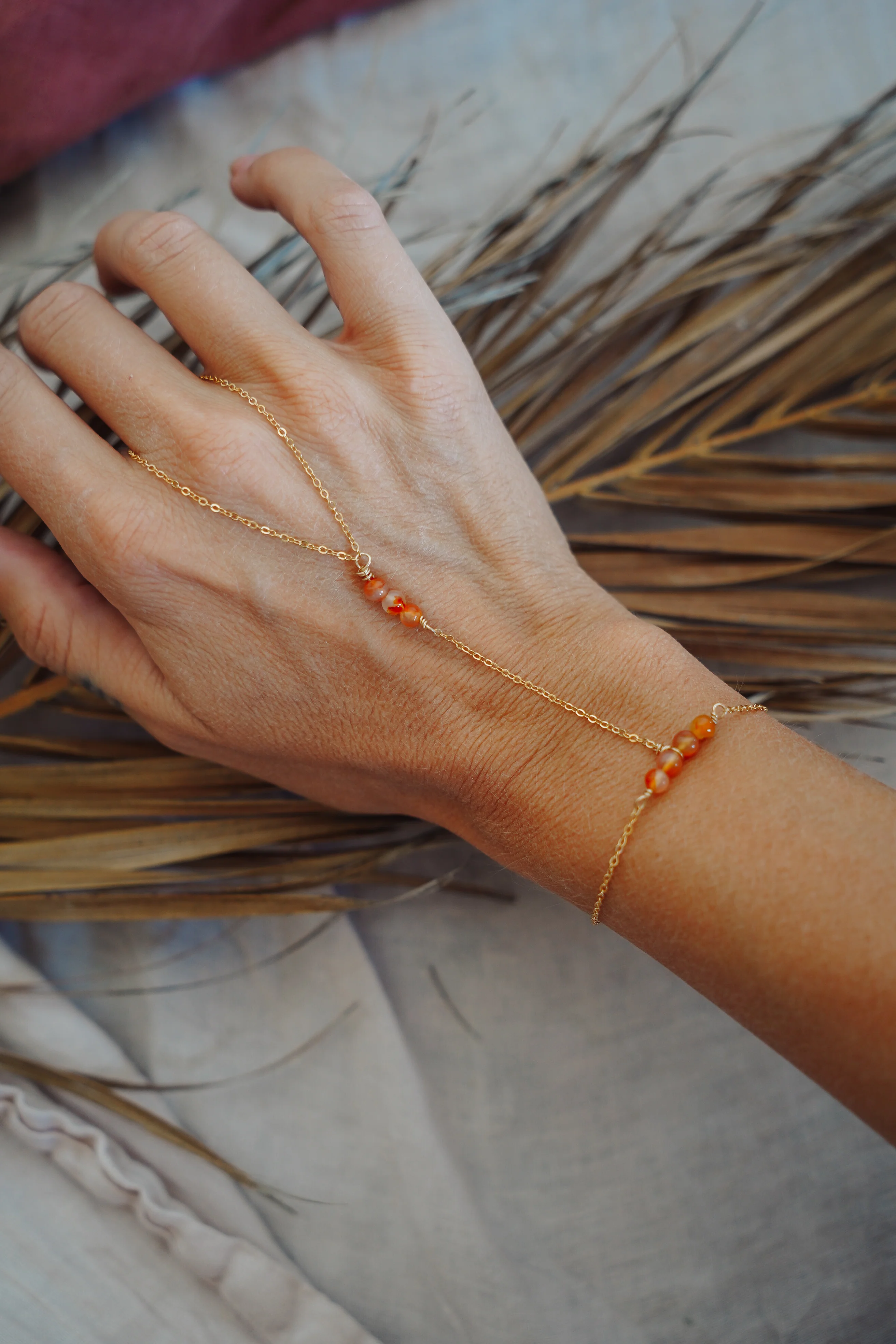 The Allure Hand Chain in Carnelian + 14k Gold-Fill