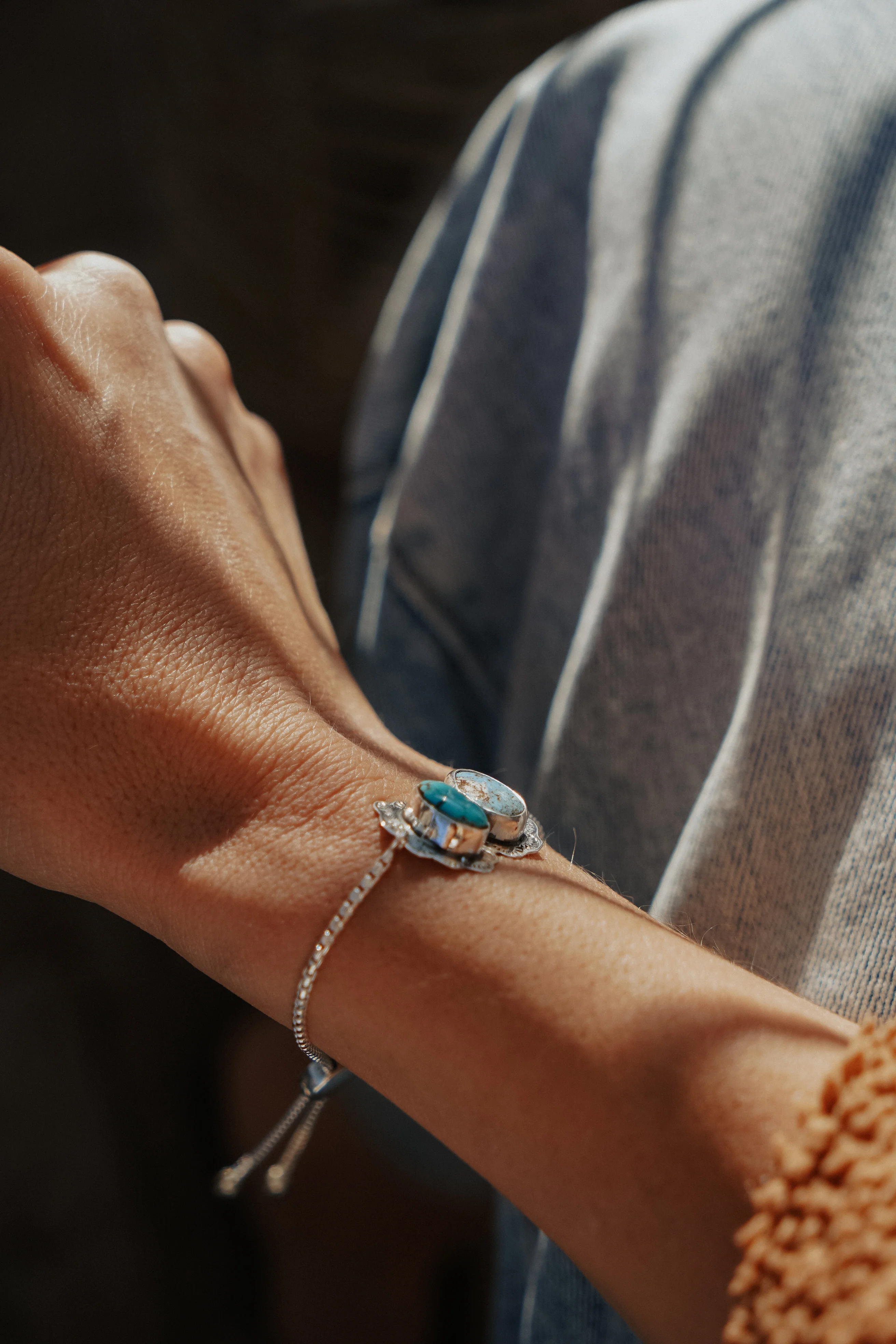 The two-stoned Out West bracelets are back after many requests from you guys. We're drooling over these! These babes are super lightweight, easy to adjust, and made with high-quality turquoise.