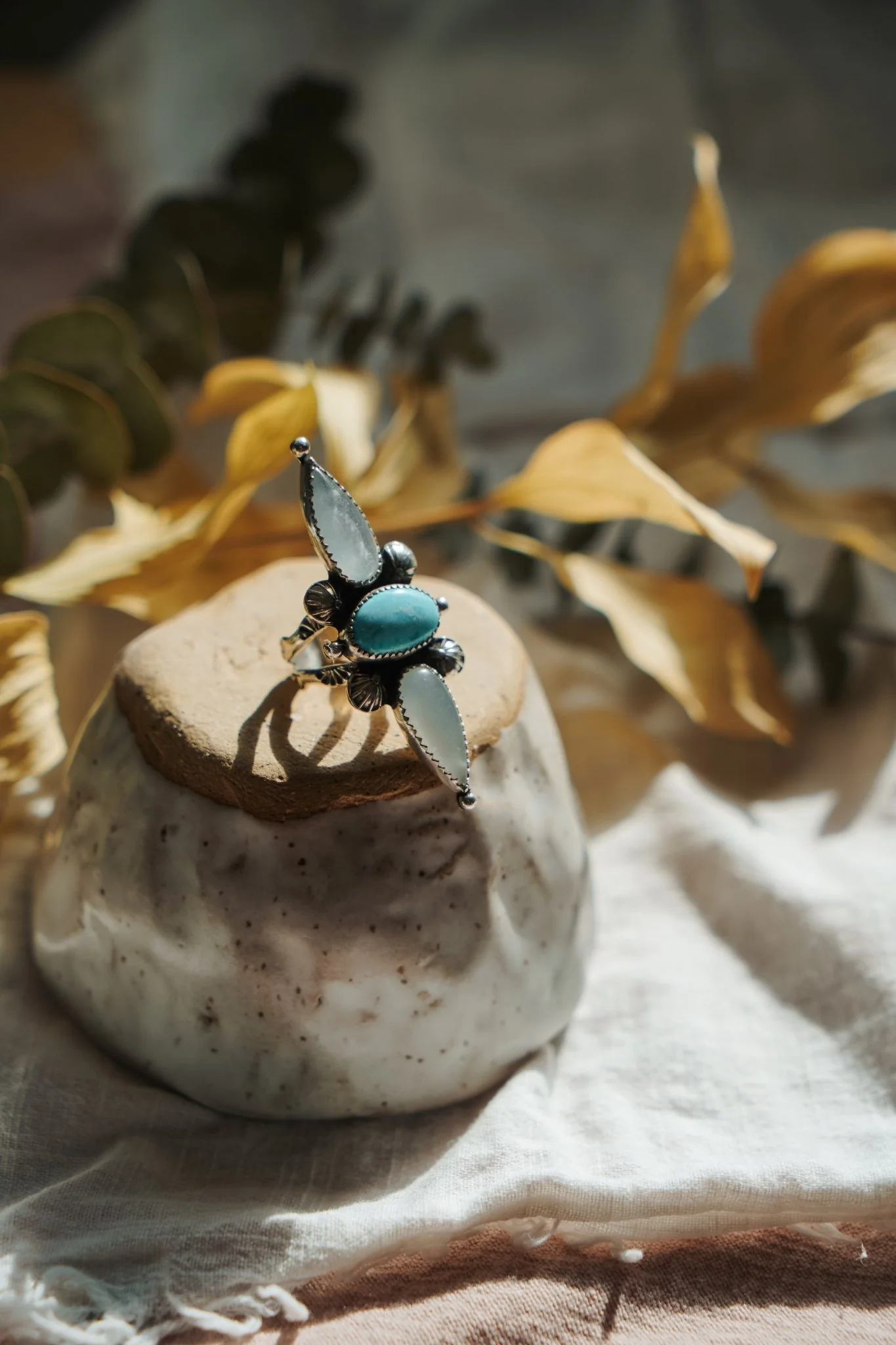 The Stardust Ring in Hubei Turquoise & Moonstone (Size 6.75)